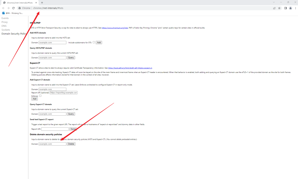 chrome://net-internals/#hsts在