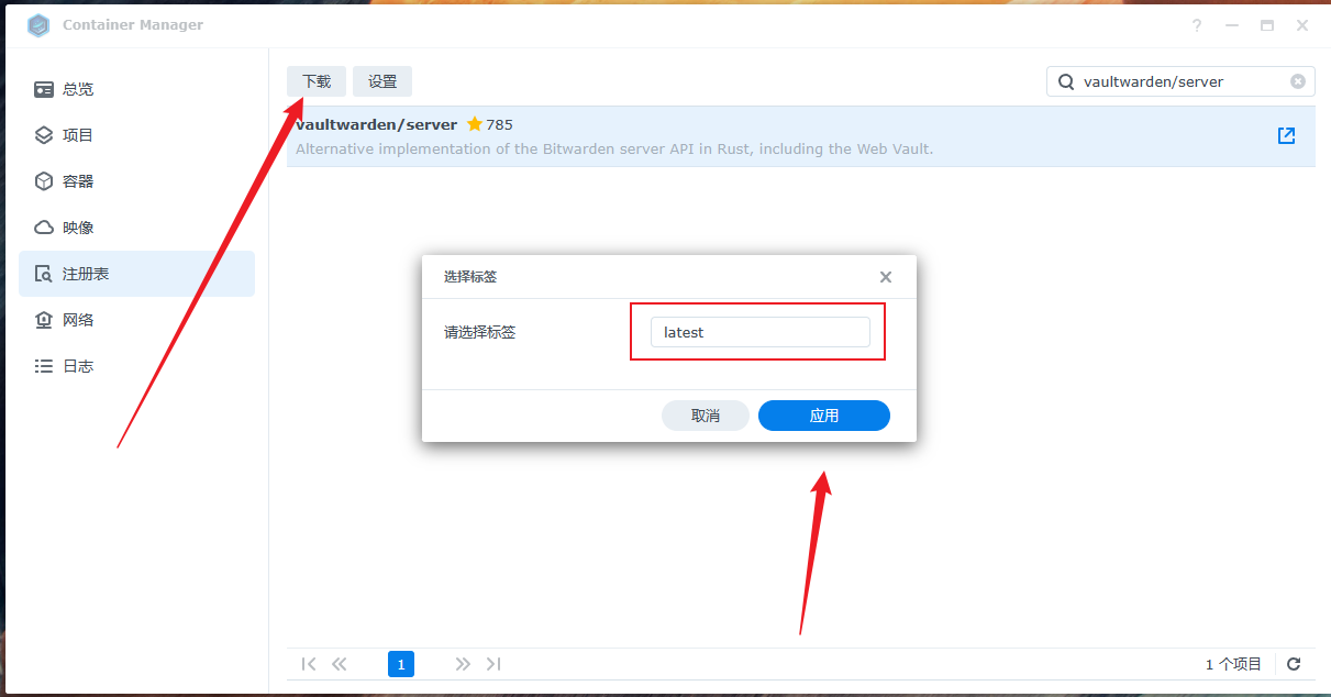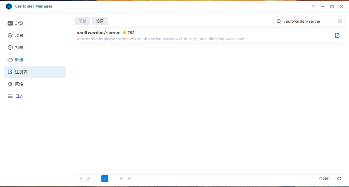 选中注册表,搜索vaultwarden,找到 vaultwarden/server