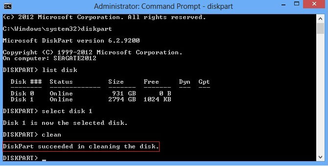 Diskpart 擦除/清理将永久擦除/销毁所选硬盘上的所有数据。请确定您正在擦除正确的磁盘
