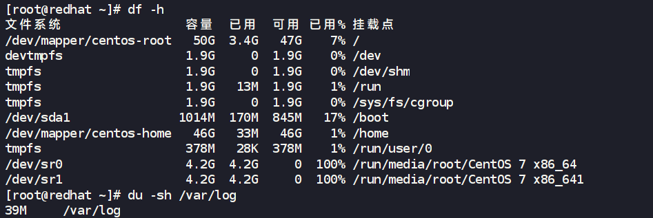 检查磁盘空间 (df & du)
